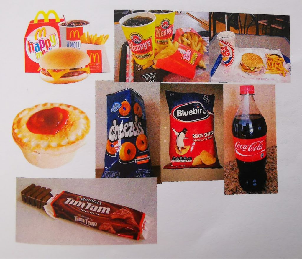 Fast foods such as McDonalds, Burger King, KFC etc.
